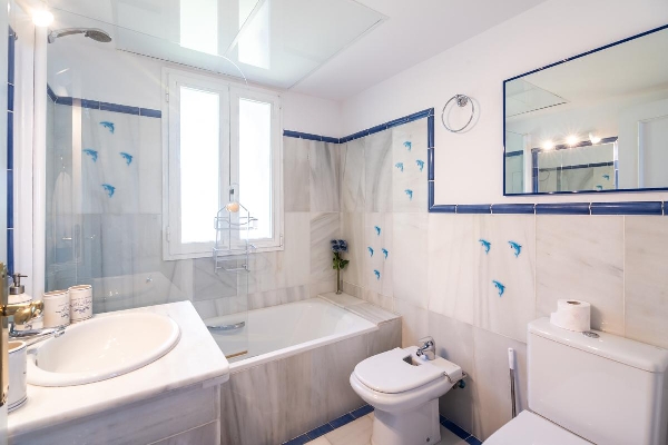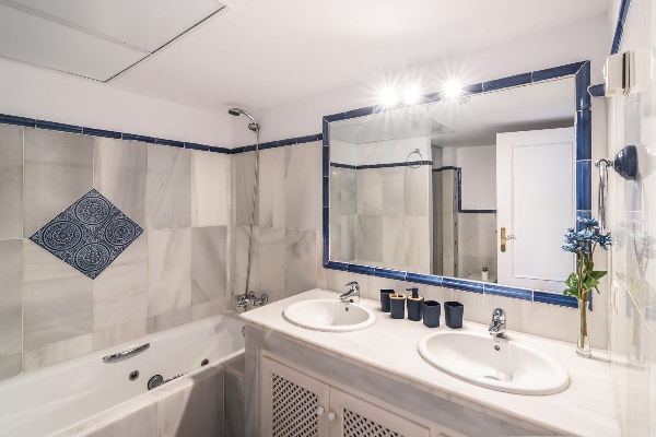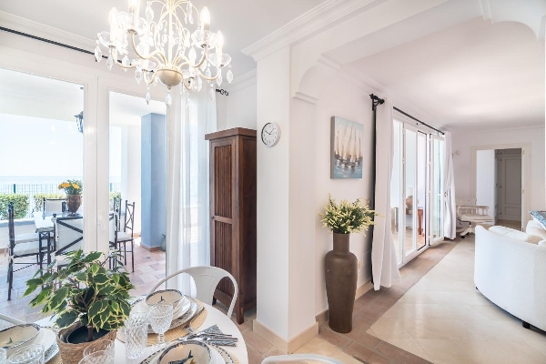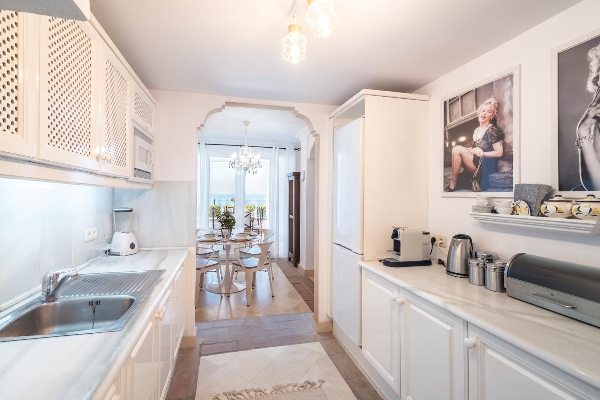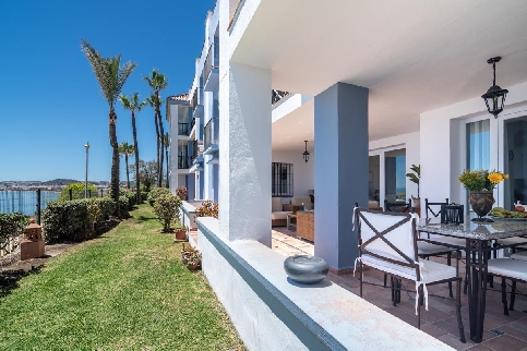 | This luxurious beach front ground floor apartment is built to the highest standards, using a mixture of marble and terracotta tiles on floors, sevillian hand-painted tiles in the kitchen and bathrooms, under floor heating and hot/cold air conditioning. The living area of the apartment is built on one level with a spacious terrace which leads on to a private garden offering views to the Mediterranean Sea and African Coast.